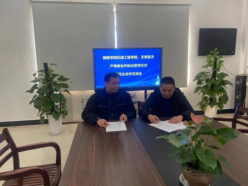 2020年12月15日上午,銅陵學(xué)院機(jī)械工程學(xué)院與我公司簽署戰(zhàn)略合作協(xié)議儀式在綜合樓一樓會議室隆重舉行。出席儀式有天奇藍(lán)天總經(jīng)理章愛前、財(cái)務(wù)部長丁繼剛、技術(shù)總工程師范守廣、技術(shù)部長吳光強(qiáng)、及綜合部部長施樂勤等,銅陵學(xué)院機(jī)械工程學(xué)院王涇文院長,夏兆清書記等出席戰(zhàn)略合作協(xié)議簽約儀式。 會上,天奇藍(lán)天公司章總代表公司向各位校領(lǐng)導(dǎo)的到來表示熱烈的歡迎,并介紹了我公司生產(chǎn)經(jīng)營情況。他希望校企雙方根據(jù)戰(zhàn)略合作協(xié)議,加快開展實(shí)質(zhì)性、規(guī)范化、系統(tǒng)化的合作步伐,通過相互交流,通過產(chǎn)學(xué)研深度融合,實(shí)現(xiàn)雙方事業(yè)邁上新臺階。 銅陵學(xué)院機(jī)械工程學(xué)院王院長首先代表學(xué)院對天奇藍(lán)天公司邀請和支持表示感謝。他在講話中指出,愿意推進(jìn)與天奇藍(lán)天公司的深度合作,開展科產(chǎn)業(yè)的相互合作,共同推進(jìn)經(jīng)濟(jì)社會的發(fā)展。 會后,天奇藍(lán)天公司章總和銅陵學(xué)院機(jī)械工程學(xué)院王院長簽署了產(chǎn)學(xué)研合作協(xié)議, 本次成功簽約標(biāo)志著我公司與銅陵學(xué)院機(jī)械工程學(xué)院進(jìn)入深度合作的階段,未來將在產(chǎn)、學(xué)、研等各方面共同創(chuàng)新發(fā)展。 |