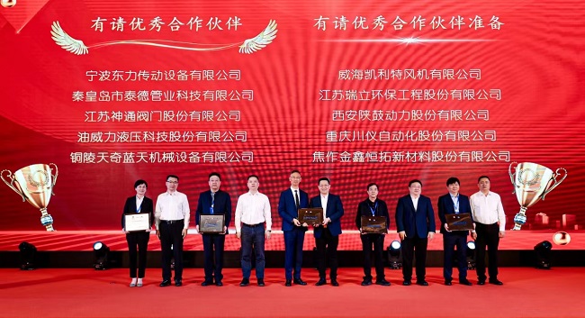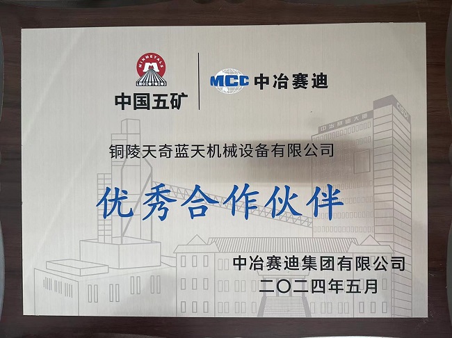 日前,在2024年中冶賽迪集團優秀合作伙伴大會上傳來喜訊:天奇藍天總經理張啟明接過2024中冶賽迪“優秀合作伙伴”牌匾。此次,公司也是帶式輸送機行業唯一獲此殊榮的企業。
